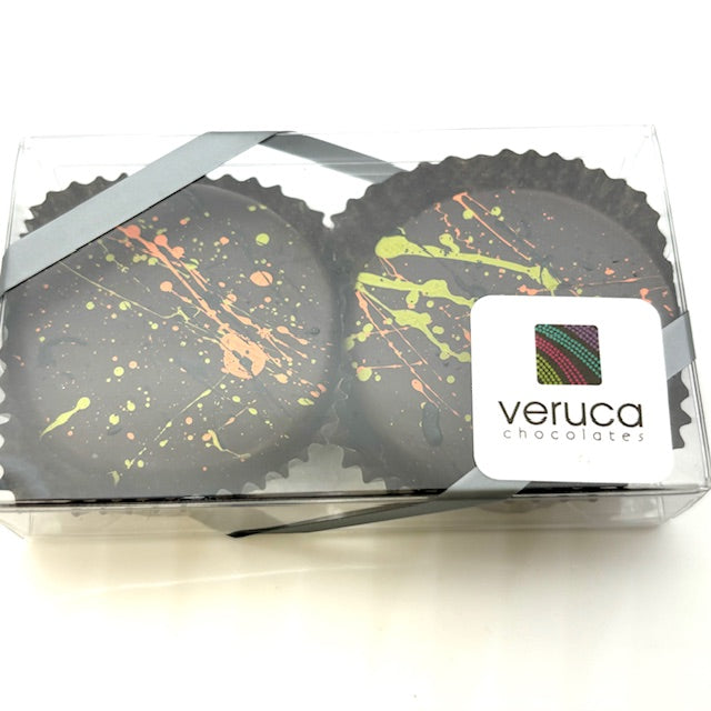 There’s nothing better than a delicious treat for Halloween! These chocolate dipped OREO® Cookies are dipped in milk and dark chocolates and splattered with fun Halloween colors. Available in 2pc boxes as both milk, both dark or one of each.